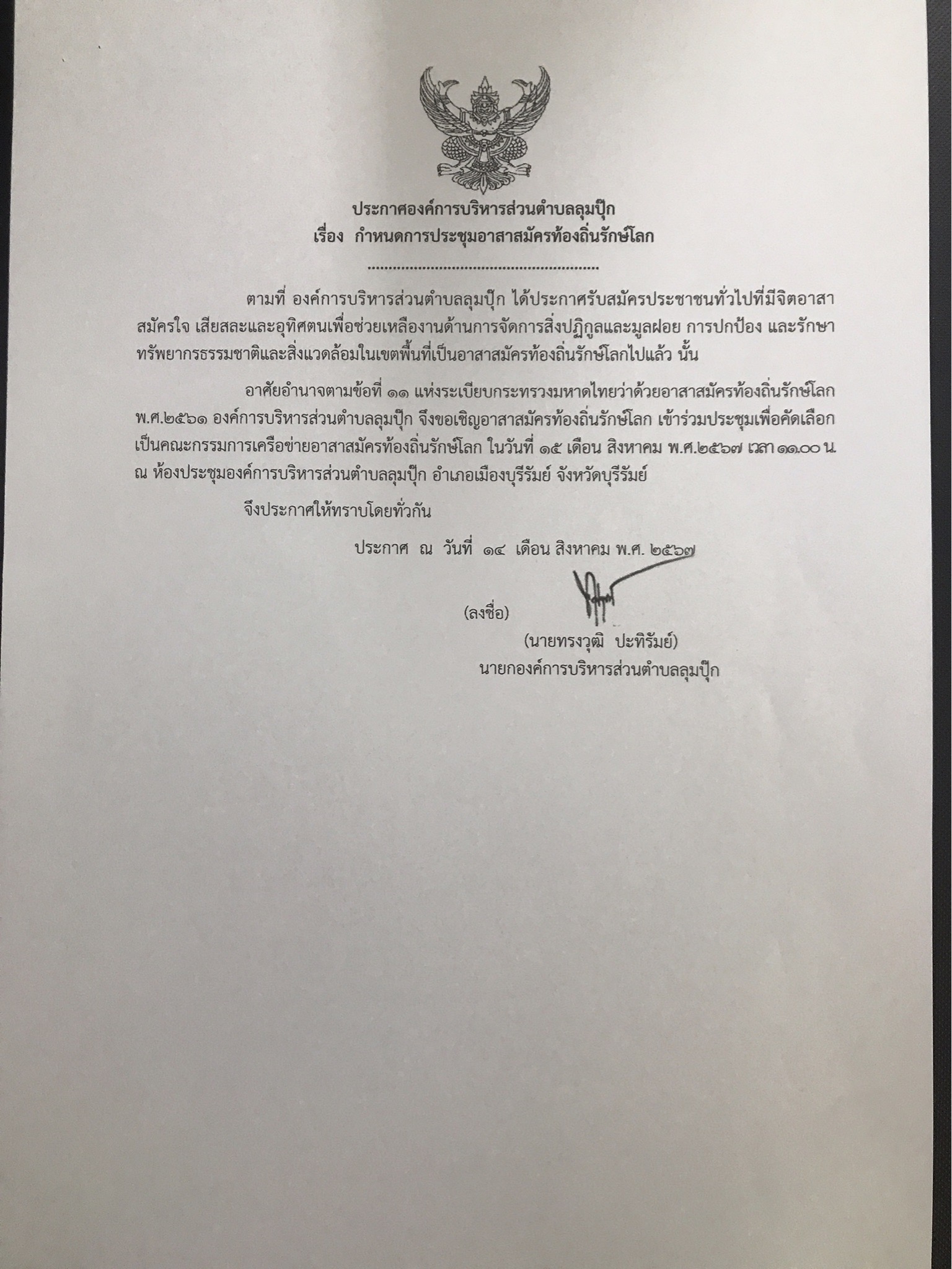 ประกาศ เรื่องกำหนดการประชุมอาสาสมัครท้องถิ่นรักษ์โลก