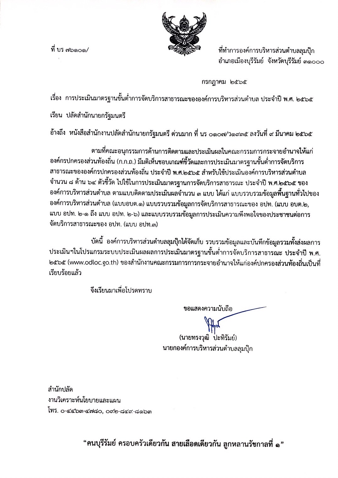 การประเมินมาตราฐานขั้นต่ำการจัดบริการสาธารณะขององค์การบริหารส่วนตำบล ประจำปี 2565