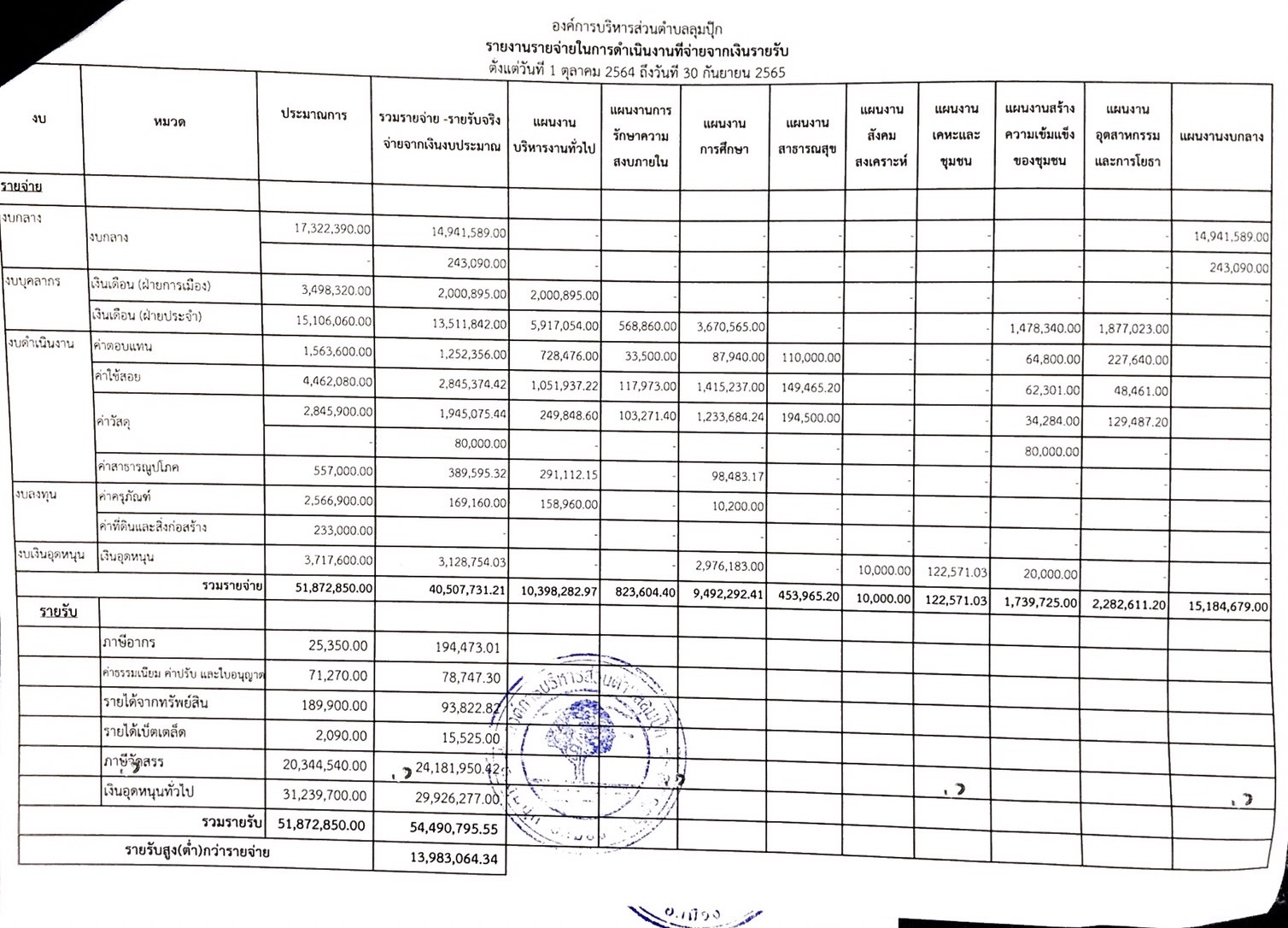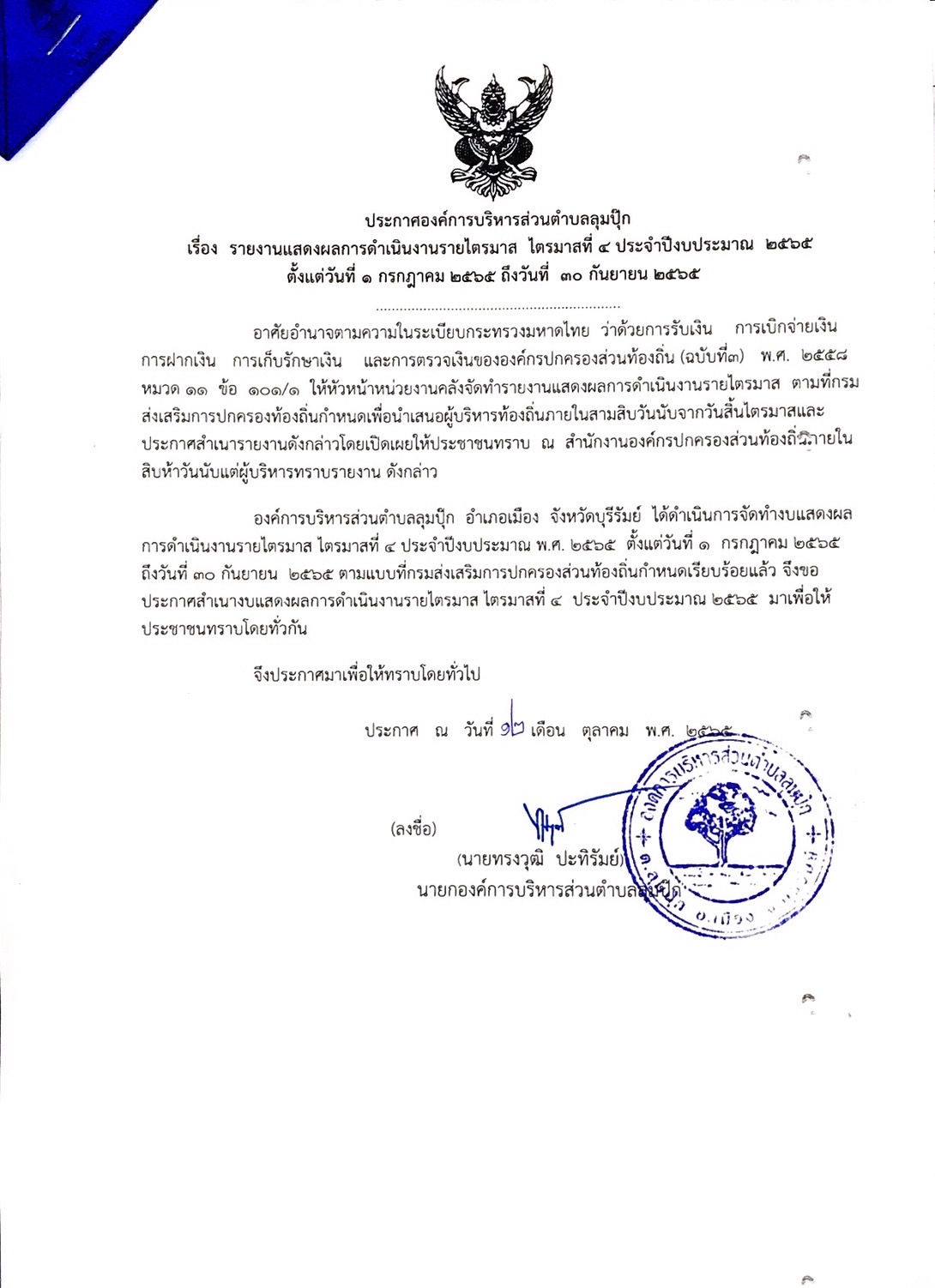เรื่อง รายงานแสดงผลการดำเนินงานรายตรมาส ไตรมาสที่ ๔ ประจำปีงบประมาณ ๒๕๖๕