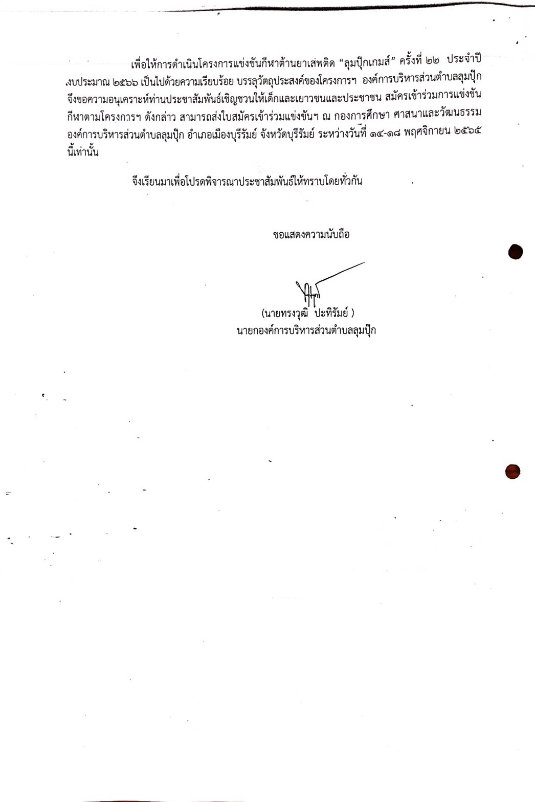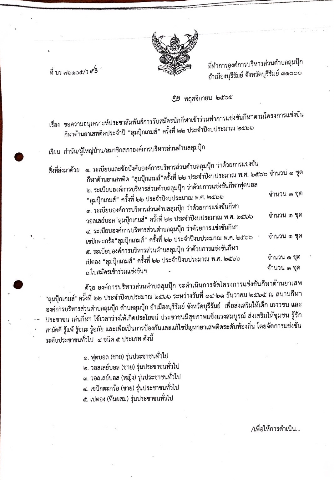 ประชาสัมพันธ์การรับสมัครนักกีฬาต้านยาเสพติดประจำปี ''ลุมปุ๊กเกมส์'' ครั้งที่ 22 ประจำปี 2566