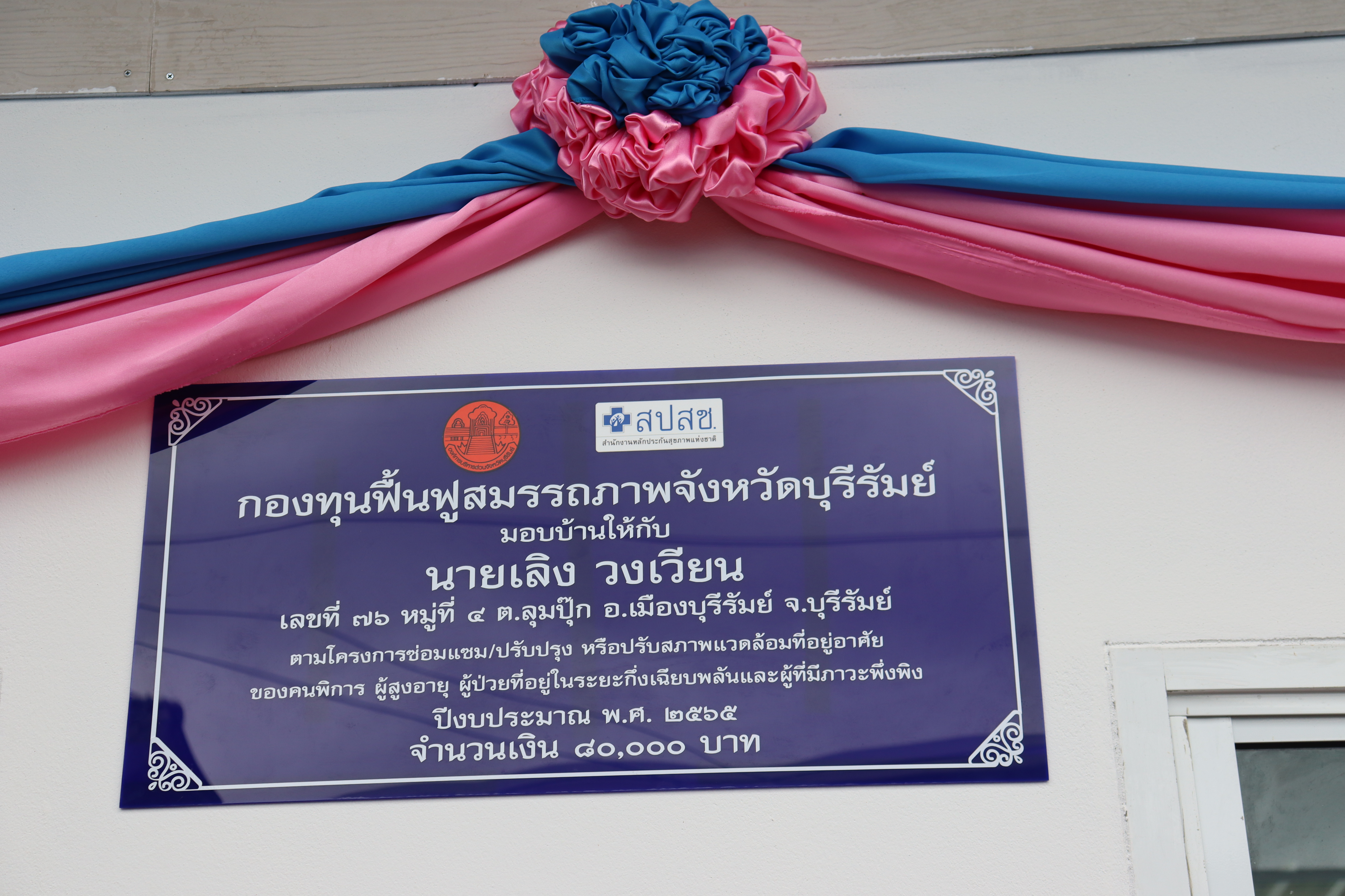 มอบบ้านให้แก่นายเลิง วงเวียน บ้านเลขที่ 74 ม.4 บ้านหนองทะลอก ต.ลุมปุ๊ก