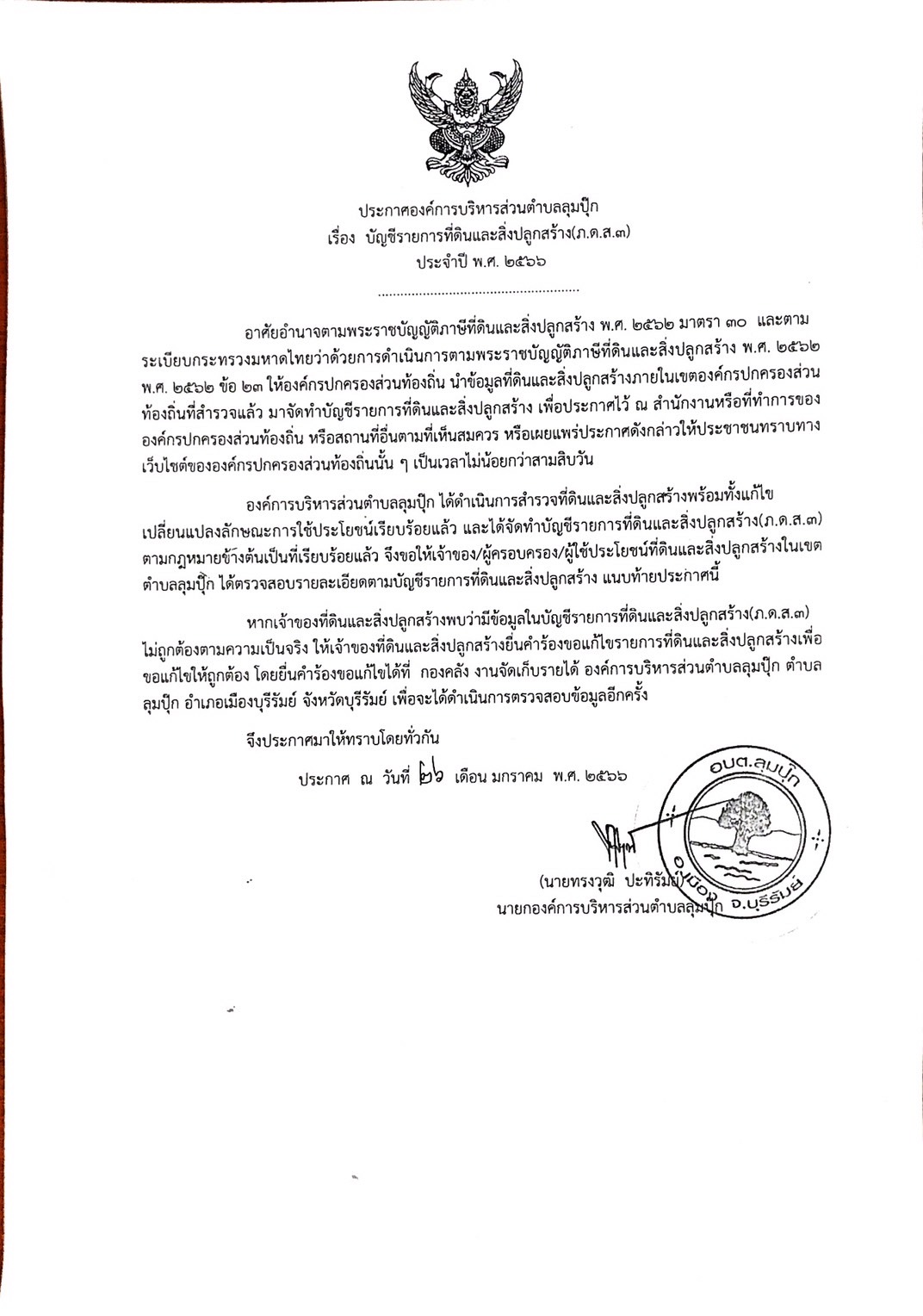 เรื่อง บัญชีรายการที่ดินและสิ่งปลูกสร้าง (ภ.ด.ส.3)