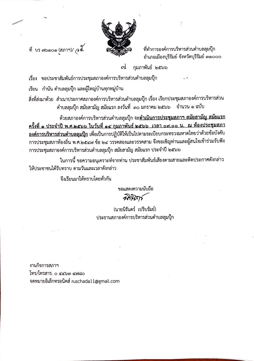 ประชาสัมพันธ์ประชุมสภาองค์การบริหารส่วนตำบลลุมปุ๊ก สมัยสามัญ สมัยแรก ครั้งที่ 1 ประจำปี 2566