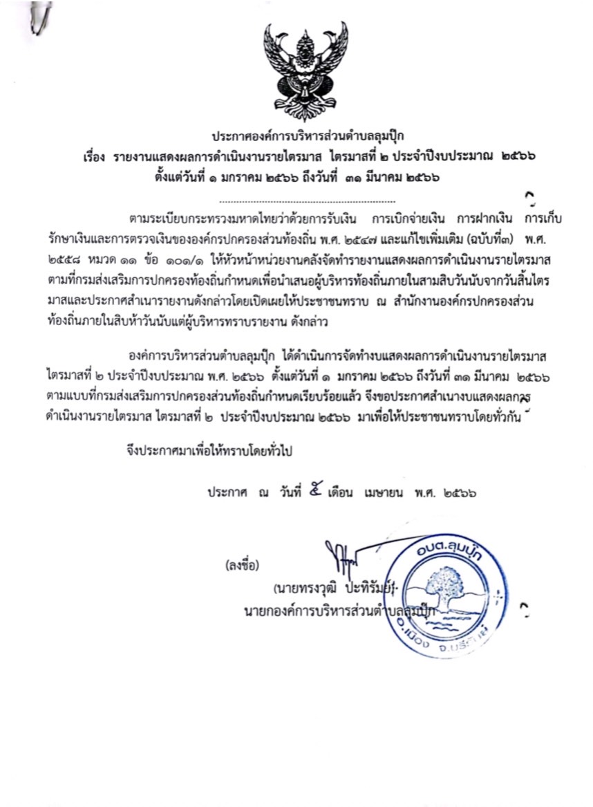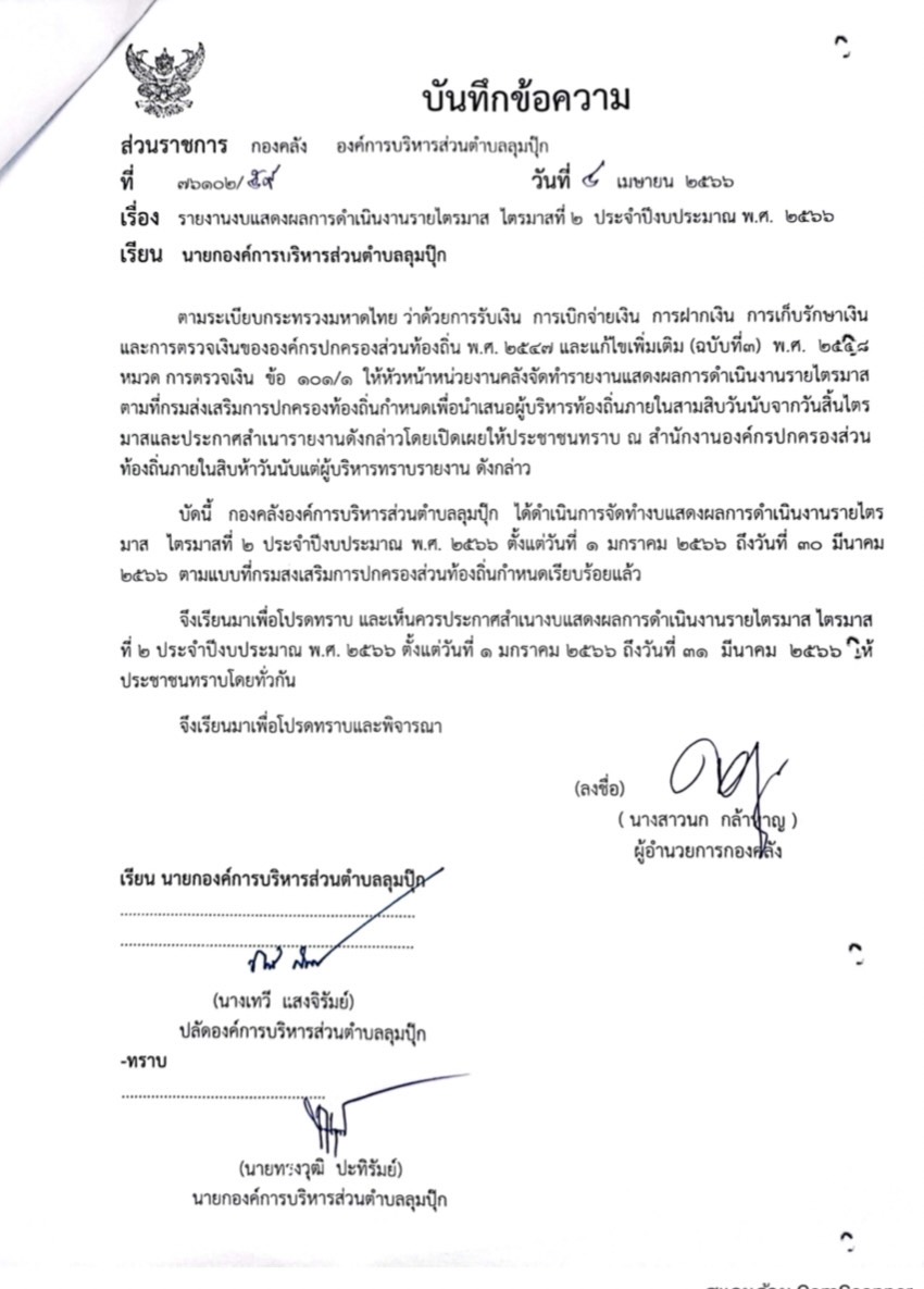 รายงานแสดงผลการดำเนินงานรายไตรมาส ไตรมาสที่ 2 ปีงบ 2566 ตั้งแต่วันที่ 1 ม.ค 66 - 31 มี.ค 66