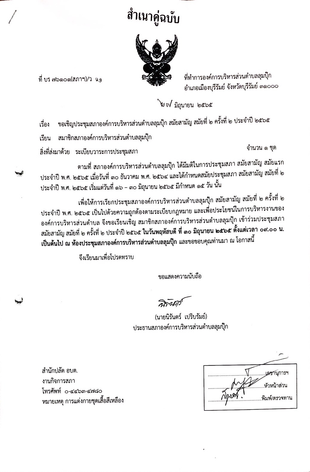 ขอเชิญประชุมสภาองค์การบริหารส่วนตำบลลุมปุ๊ก สมัยสามัญ สมัยที่ 2 ครั้งที่ 2 ประจำปี พ.ศ.2565