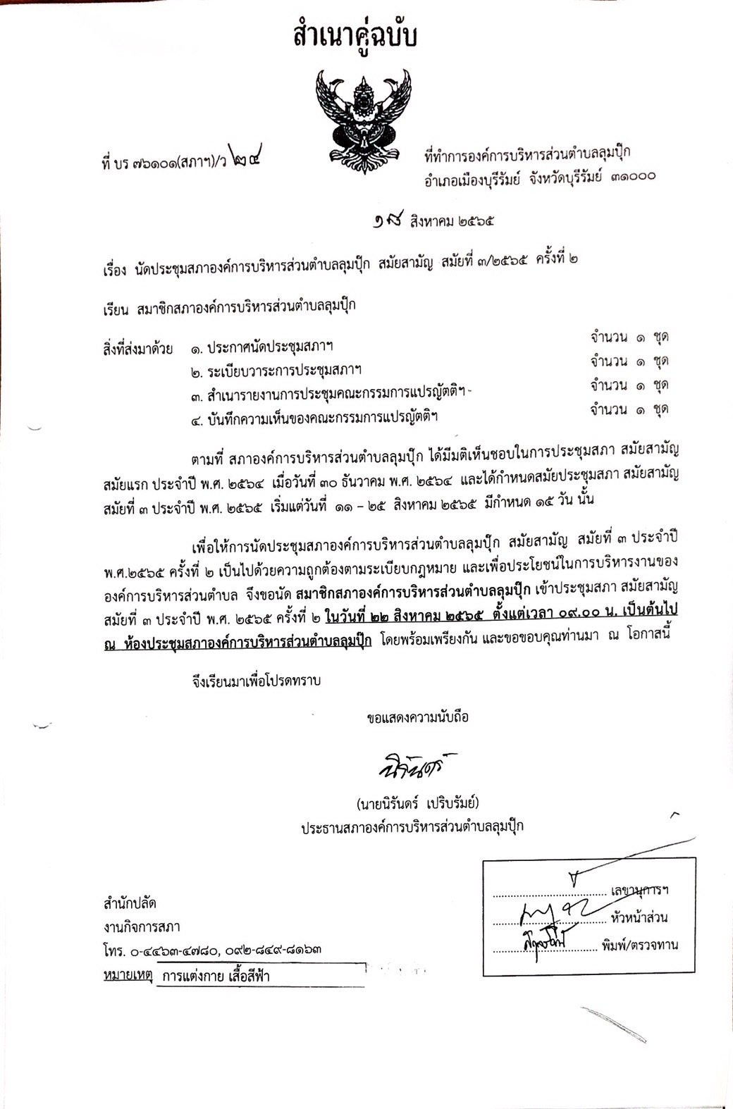 นัดประชุมสภา อบต.ลุมปุ๊ก สมัยสามัญ สมัยที่ 3/2565 ครั้งที่ 2