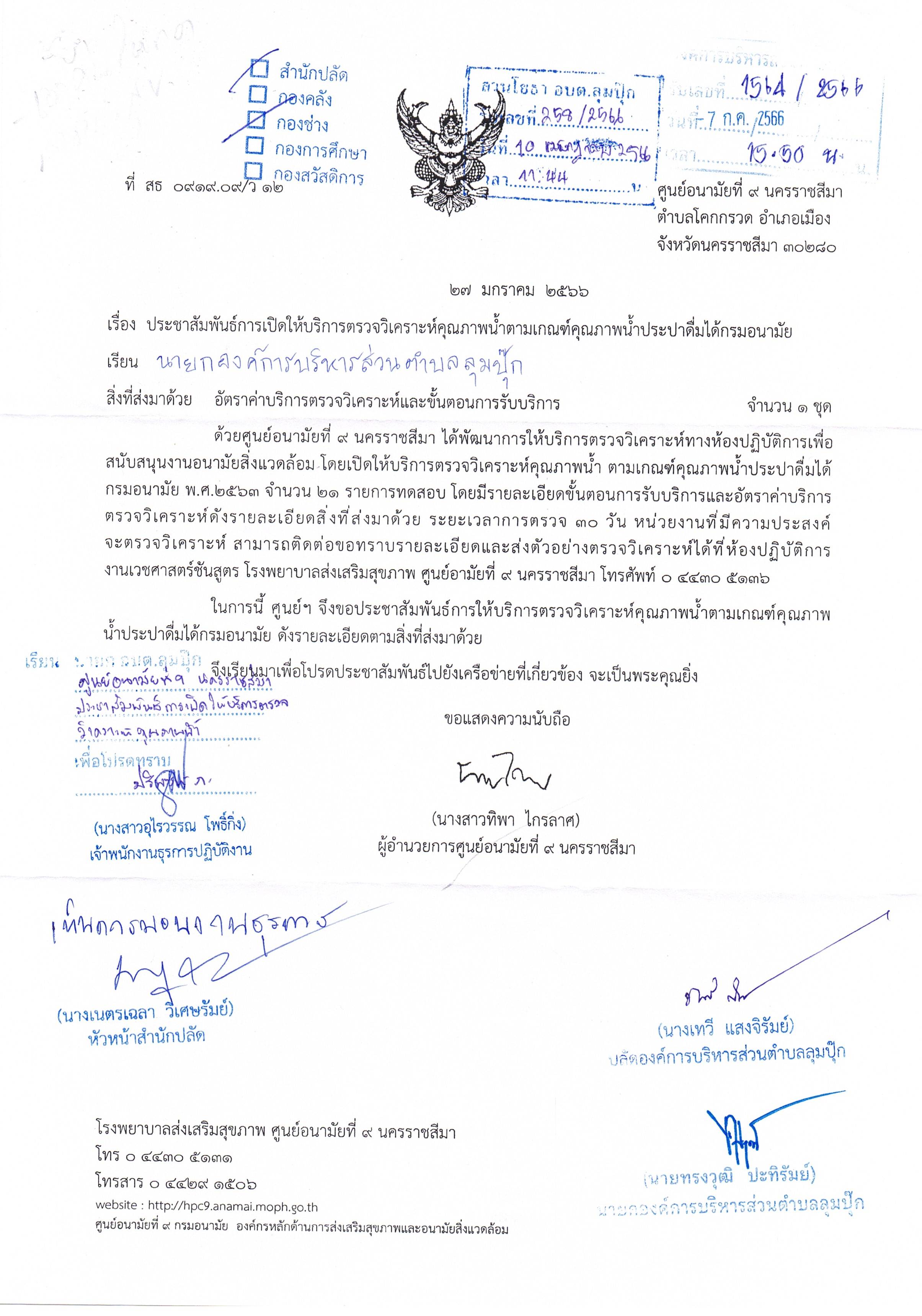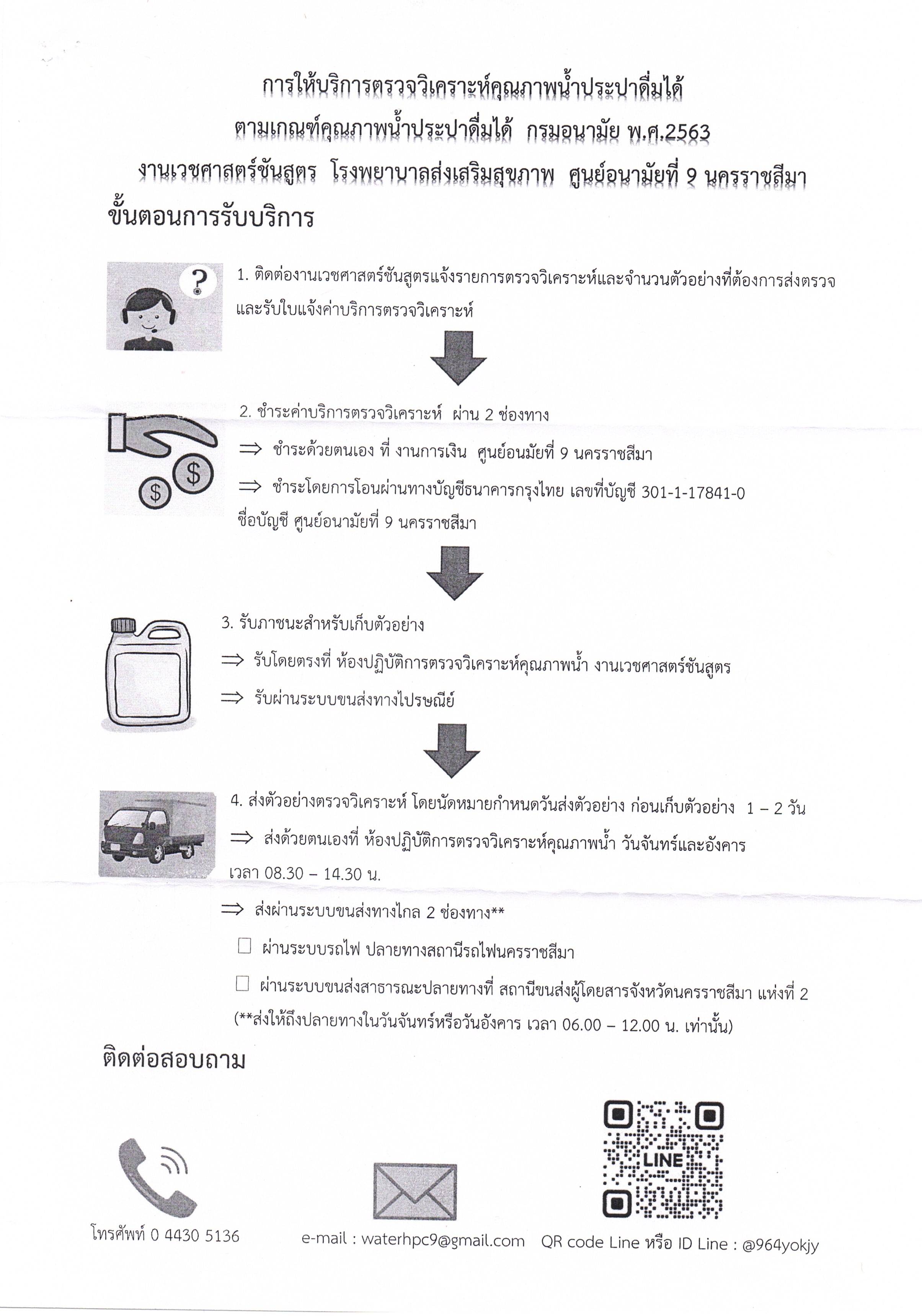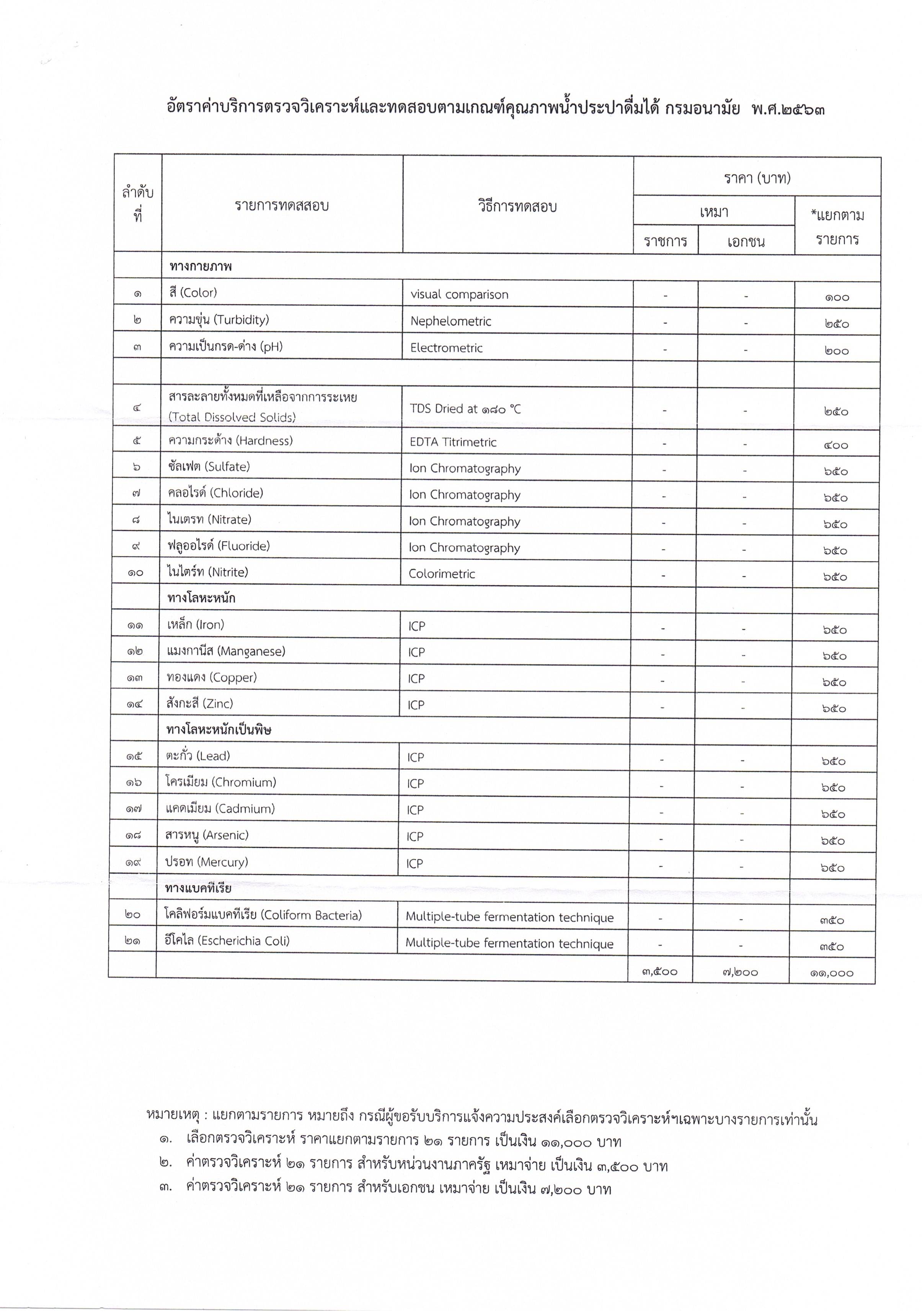 ประชาสัมพันธ์การเปิดให้บริการตรวจวิเคราะห์คุณภาพน้ำตามเกณฑ์คุณภาพน้ำประปาดื่ม