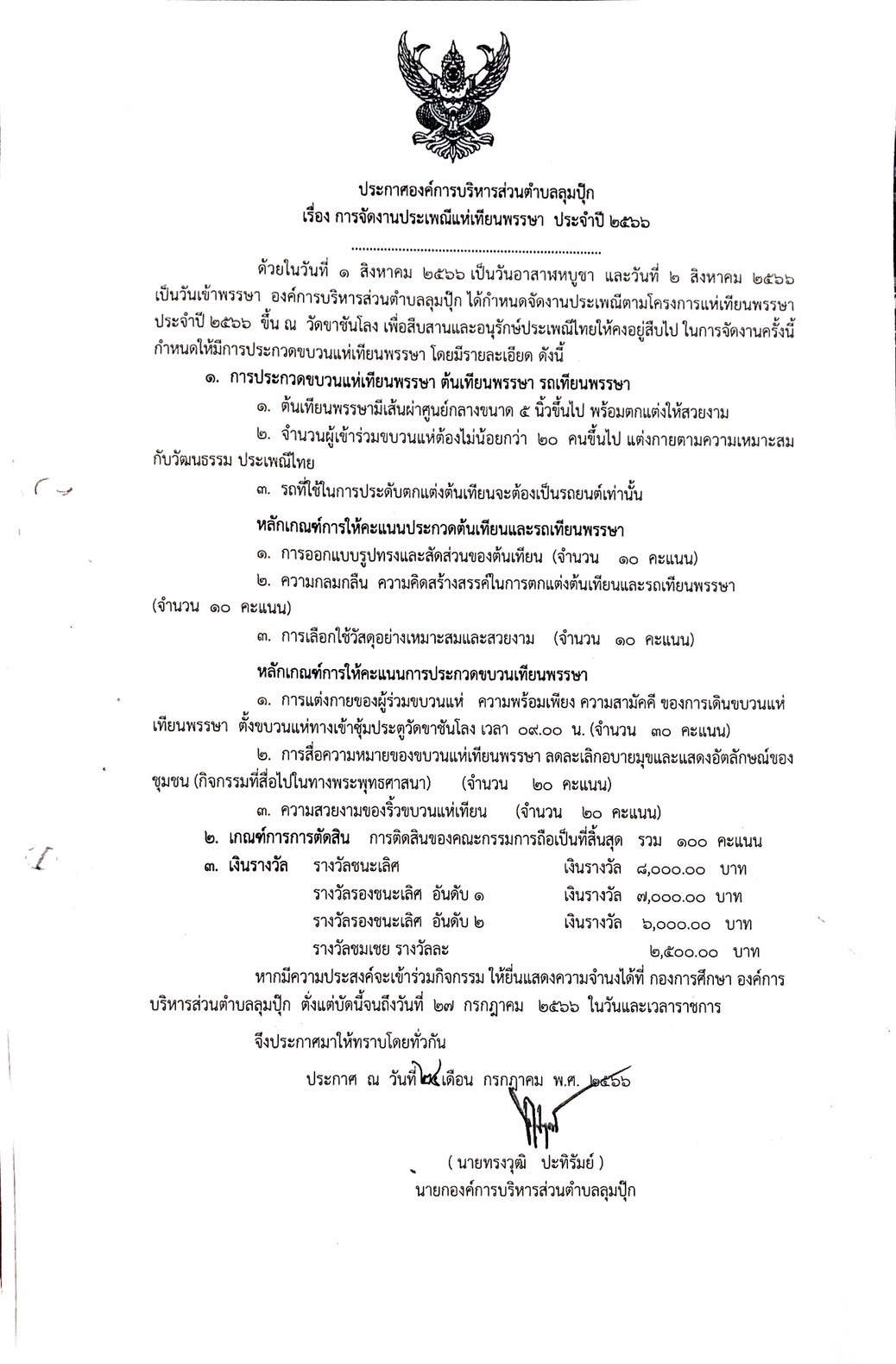 ประกาศ เรื่องการจัดงานประเพณีแห่เทียนพรรษา ประจำปี 2566