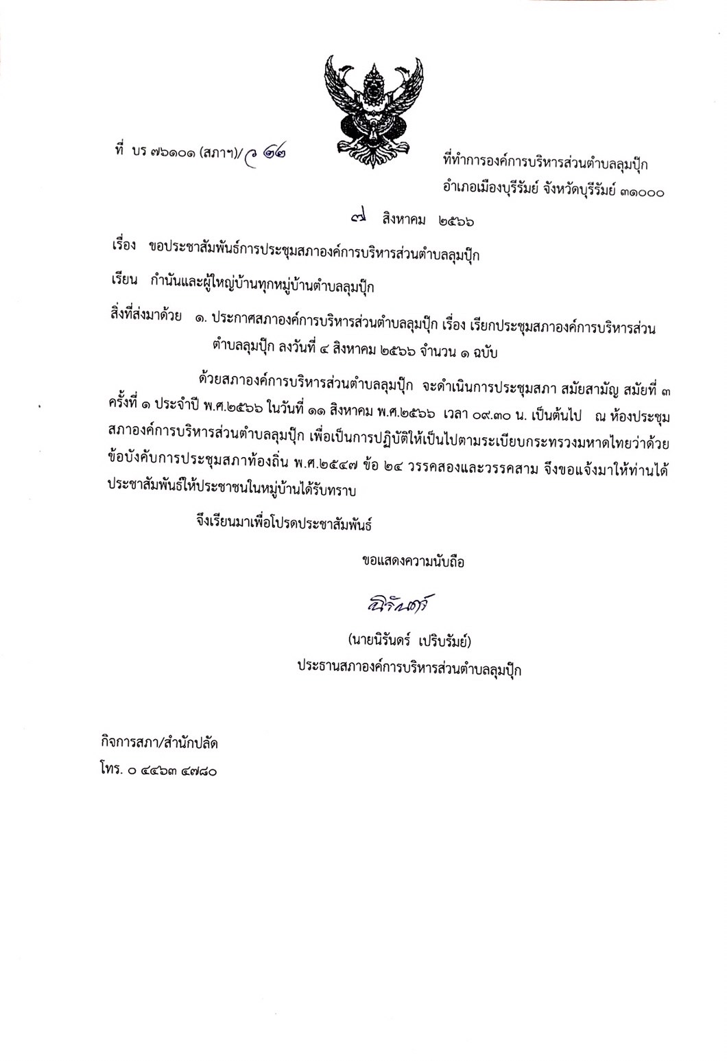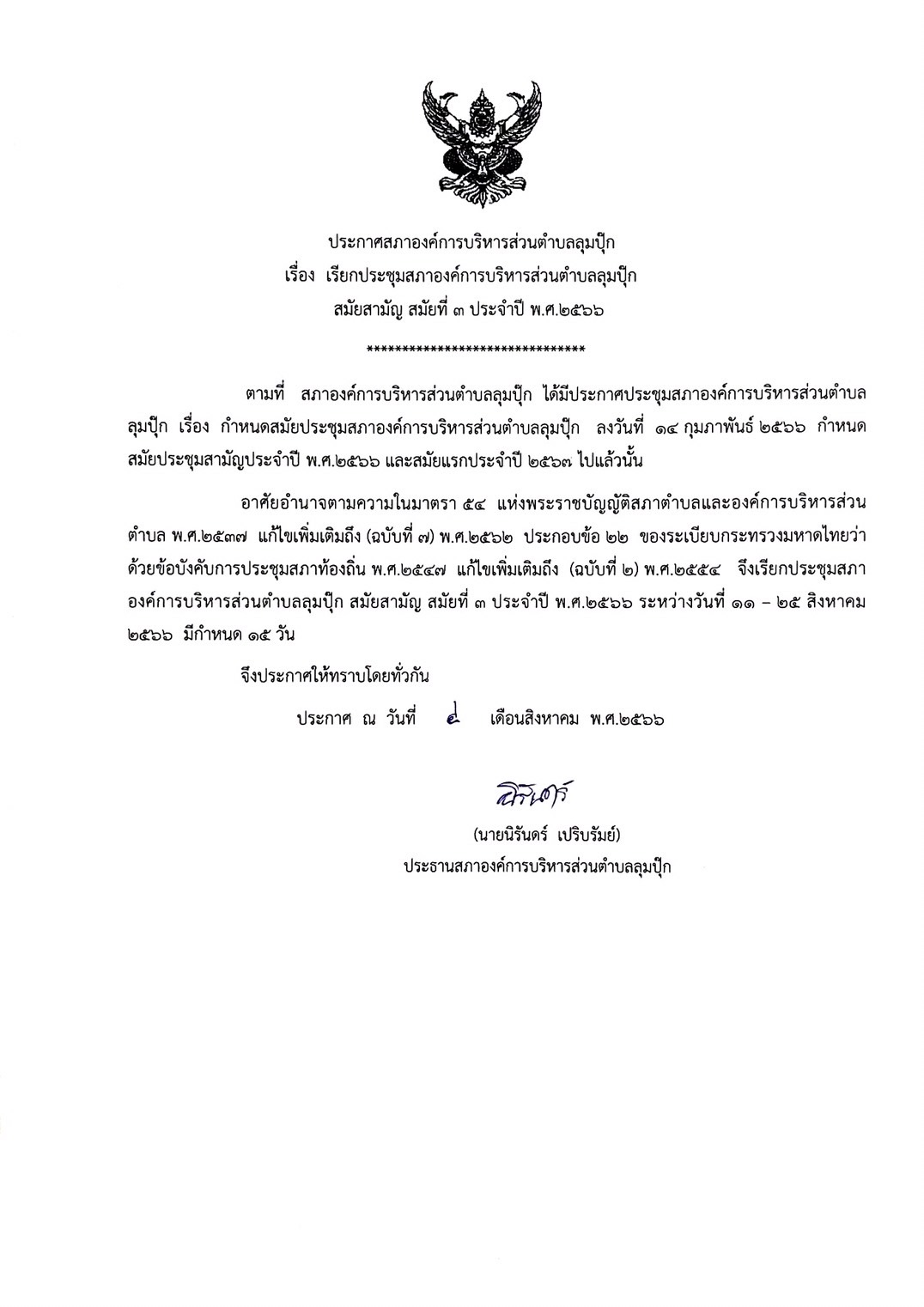 ประชาสัมพันธ์การประชุมสภาองค์การบริหารส่วนตำบลลุมปุ๊ก
