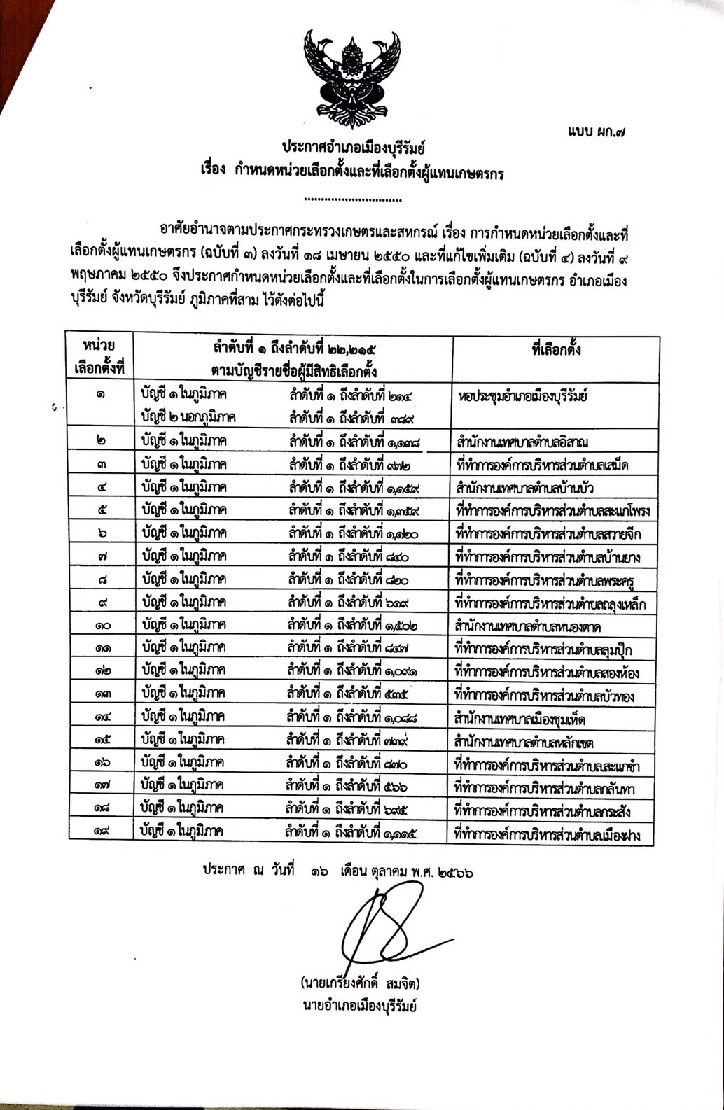 กำหนดหน่วยเลือกตั้งและที่เลือกตั้งผู้ที่เกษตรกร
