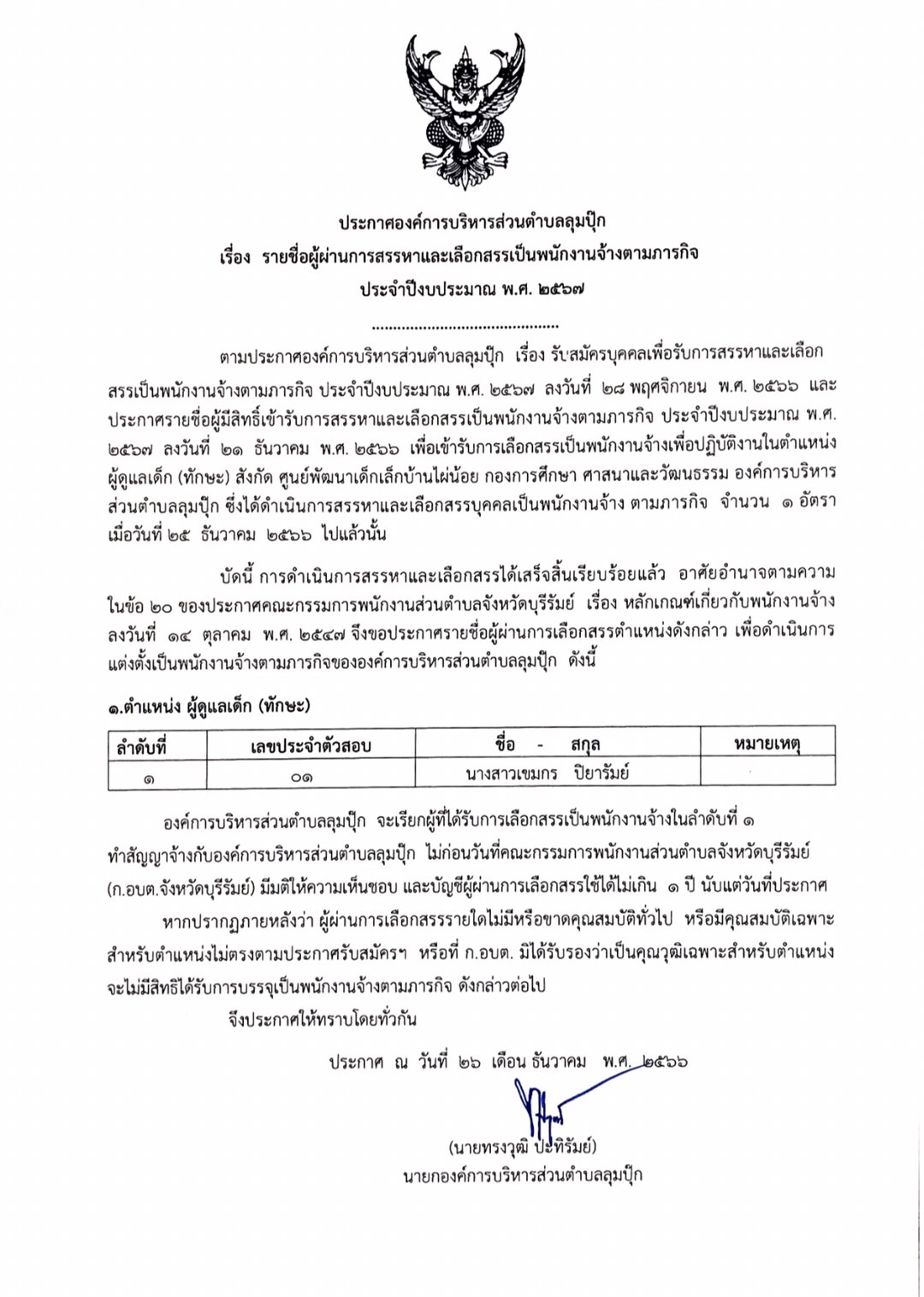 รายชื่อผู้ผ่านการสรรหาและเลือกสรรเป็นพนักงานจ้างตามภารกิจ