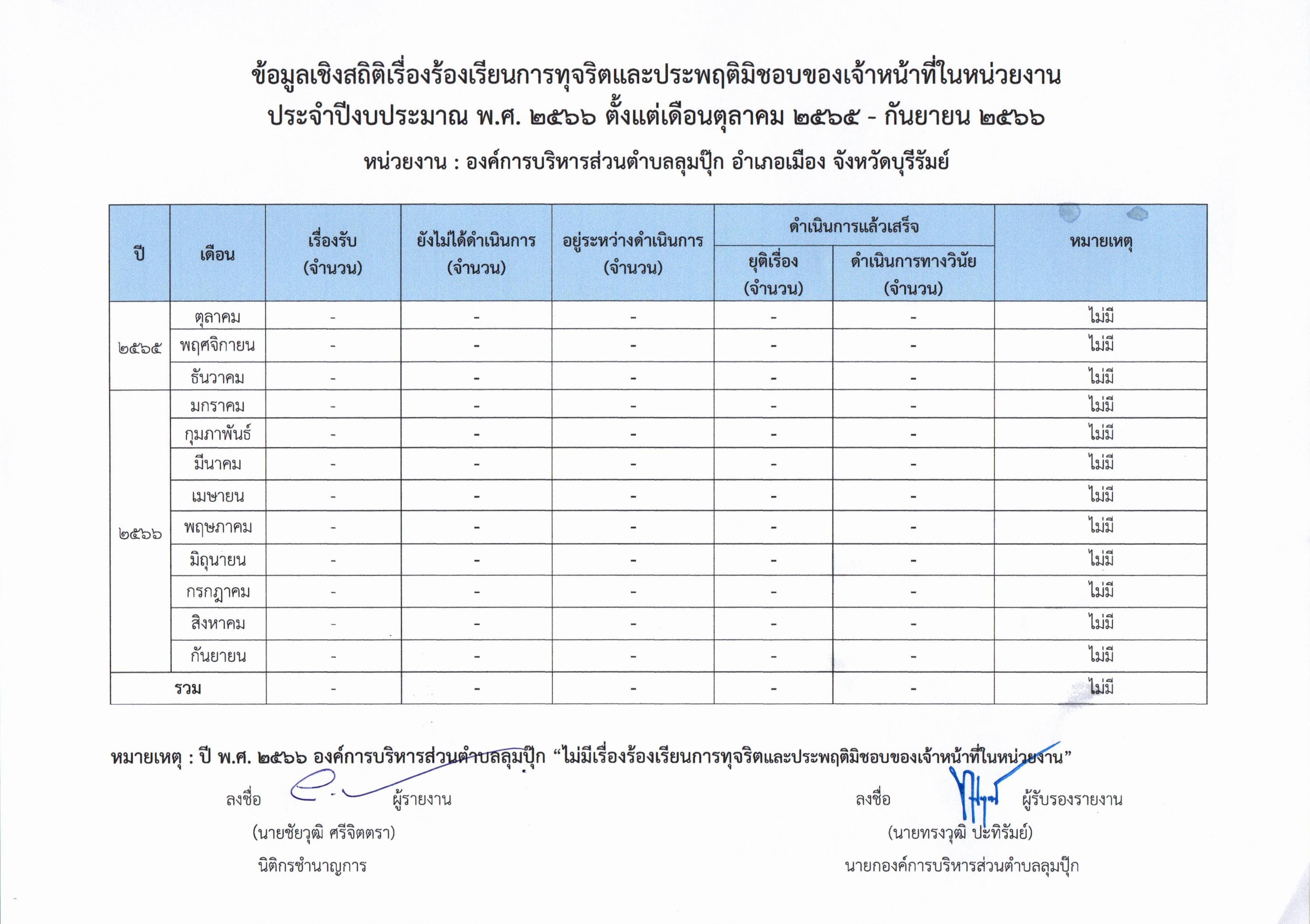 ข้อมูลสถิติ เรื่องร้องเรียนการทุจริตและพฤติมิชอบ