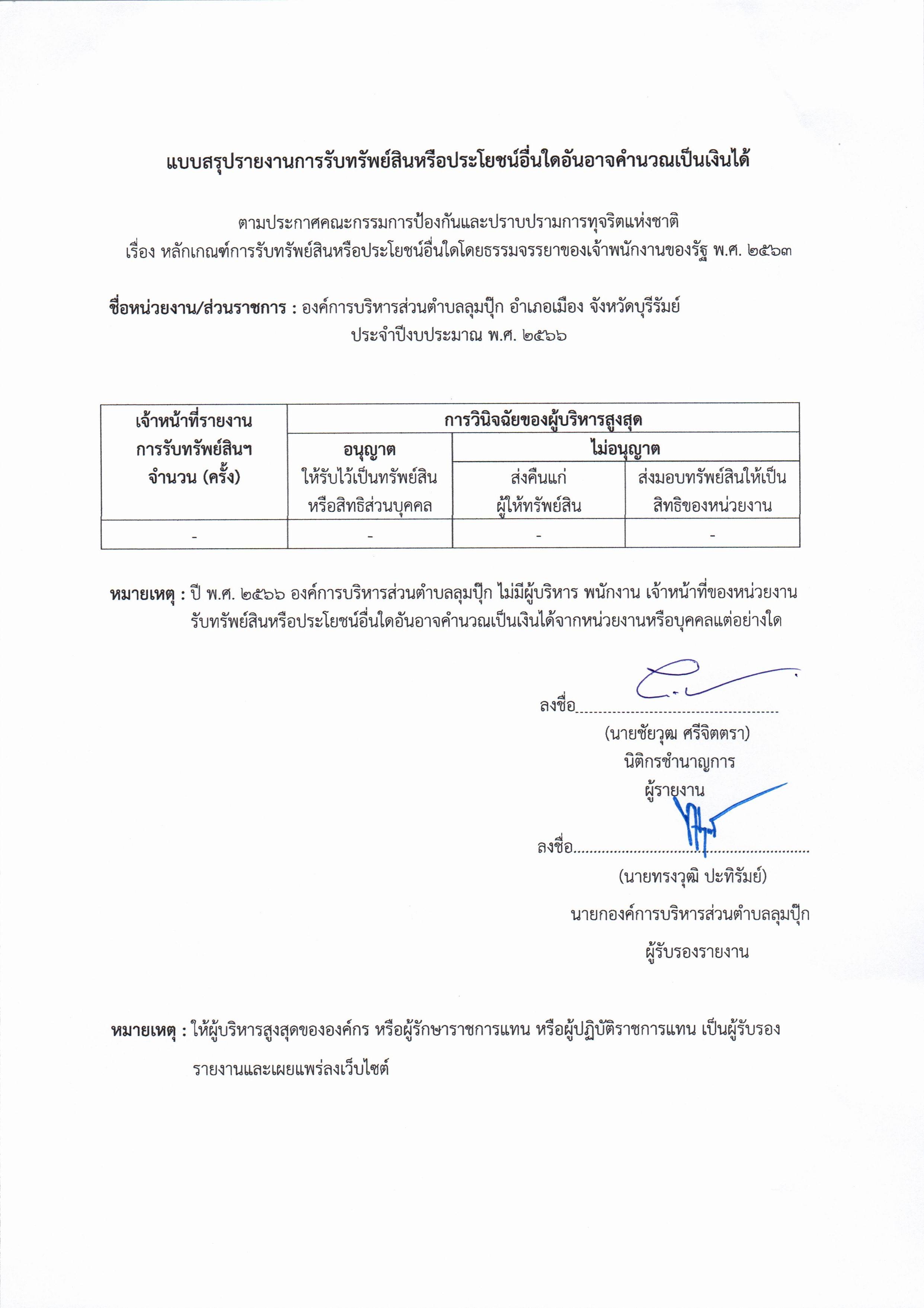 แบบสรุปรายงานการับทรัพย์สินหรือประโยชน์อื่นใดโดยธรรมจรรยา